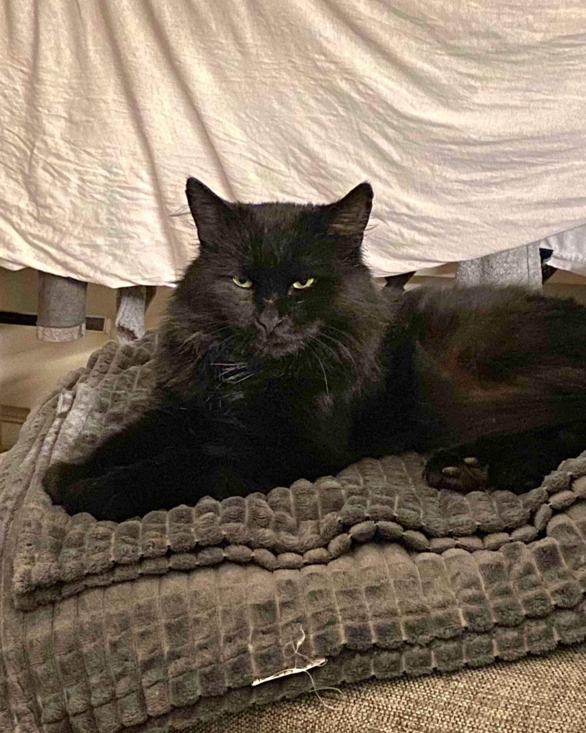 Sengen din er komfortabel, men jeg liker aller best å sove i den når du ikke ligger der sammen med meg. Utenom sengen er sofaen den beste soveplassen, men om du gir meg et mykt teppe under sengen din eller et lignende sted når jeg flytter inn hos deg, vil jeg sette stor pris på det.