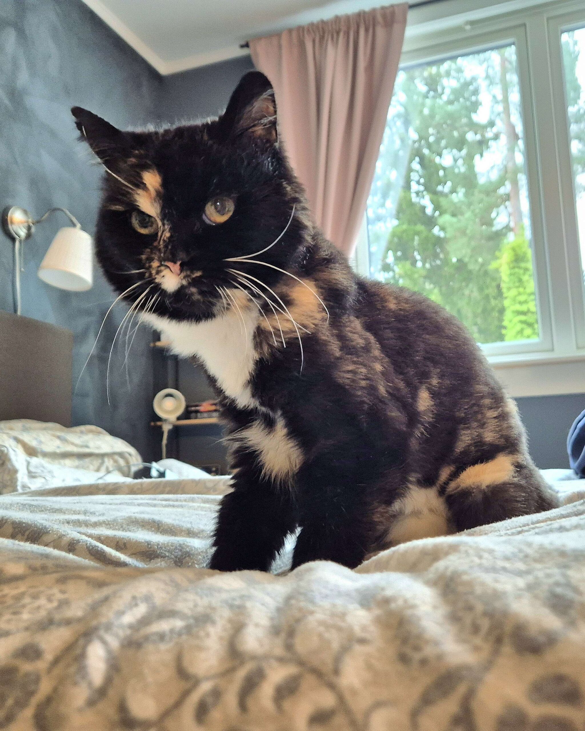 Jeg har aldri klort eller bitt og er generelt en veldig forsiktig og søt dame. Jeg klorer heller ikke på møbler så lenge jeg har et klorebrett på gulvet som jeg kan bruke. Planter har jeg heller ingen interesse for. Det er lett å få meg i transportburet, men når vi kjører, mjauer jeg litt misfornøyd, men det er vel normalt? Medisinene mine tar jeg også imot uten problemer, men man bør være to.