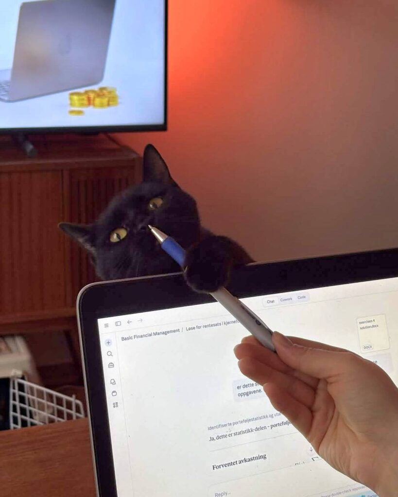 I fosterhjem har det blitt tydelig at jeg er en liten original. Favorittleken min er penner, og når jeg skal klore, foretrekker jeg treverk – gjerne spisebordet. Klorestativet står der det også, men jeg har tydelig min egen smak. Jeg er vokal, uttrykksfull og full av personlighet. Ifølge fosterhjemmet får jeg mine to rødhårete fosterbrødre til å fremstå normale.