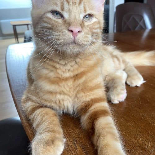 Jeg er en rolig godgutt som elsker nærhet og kos. Jeg er sosial og imøtekommende, og ligger gjerne helt inntil deg på sofaen – med labben eller overkroppen min på deg. Du får også kose meg på magen. Jeg er veldig glad i kos og maler høyt og lenge.