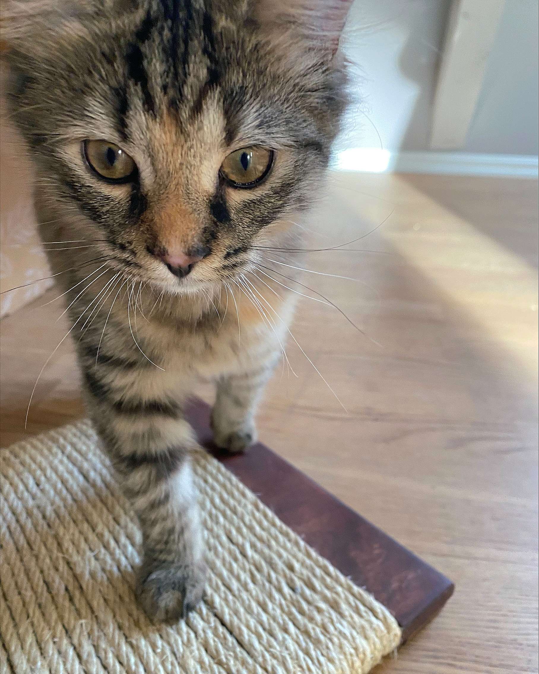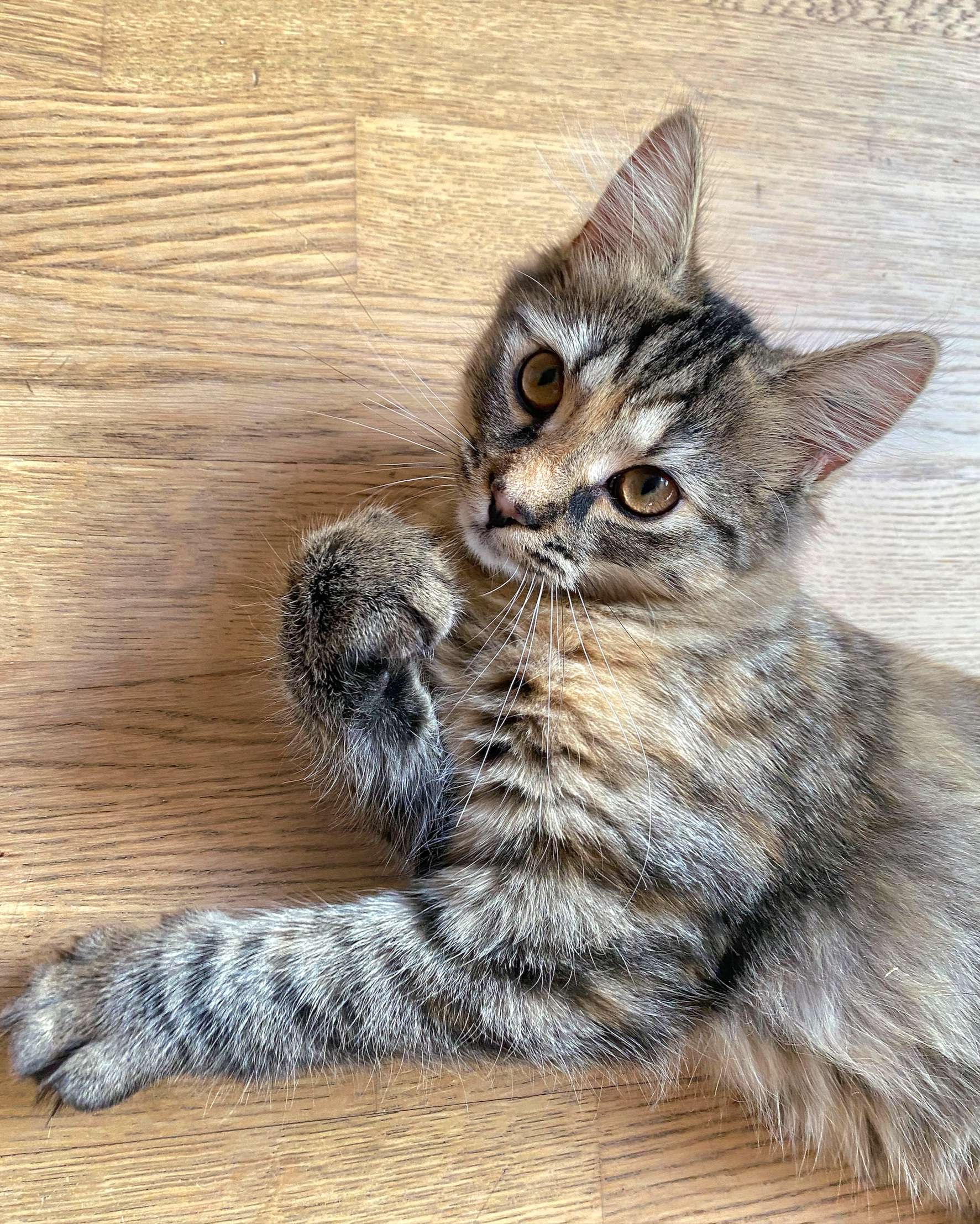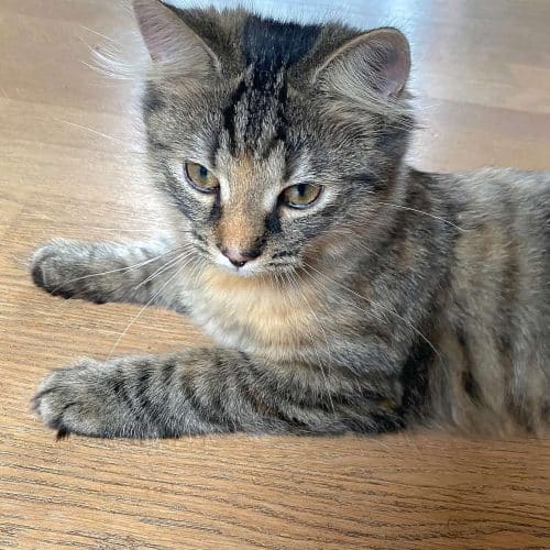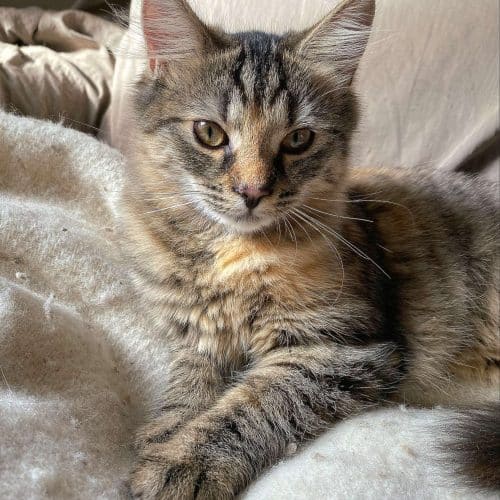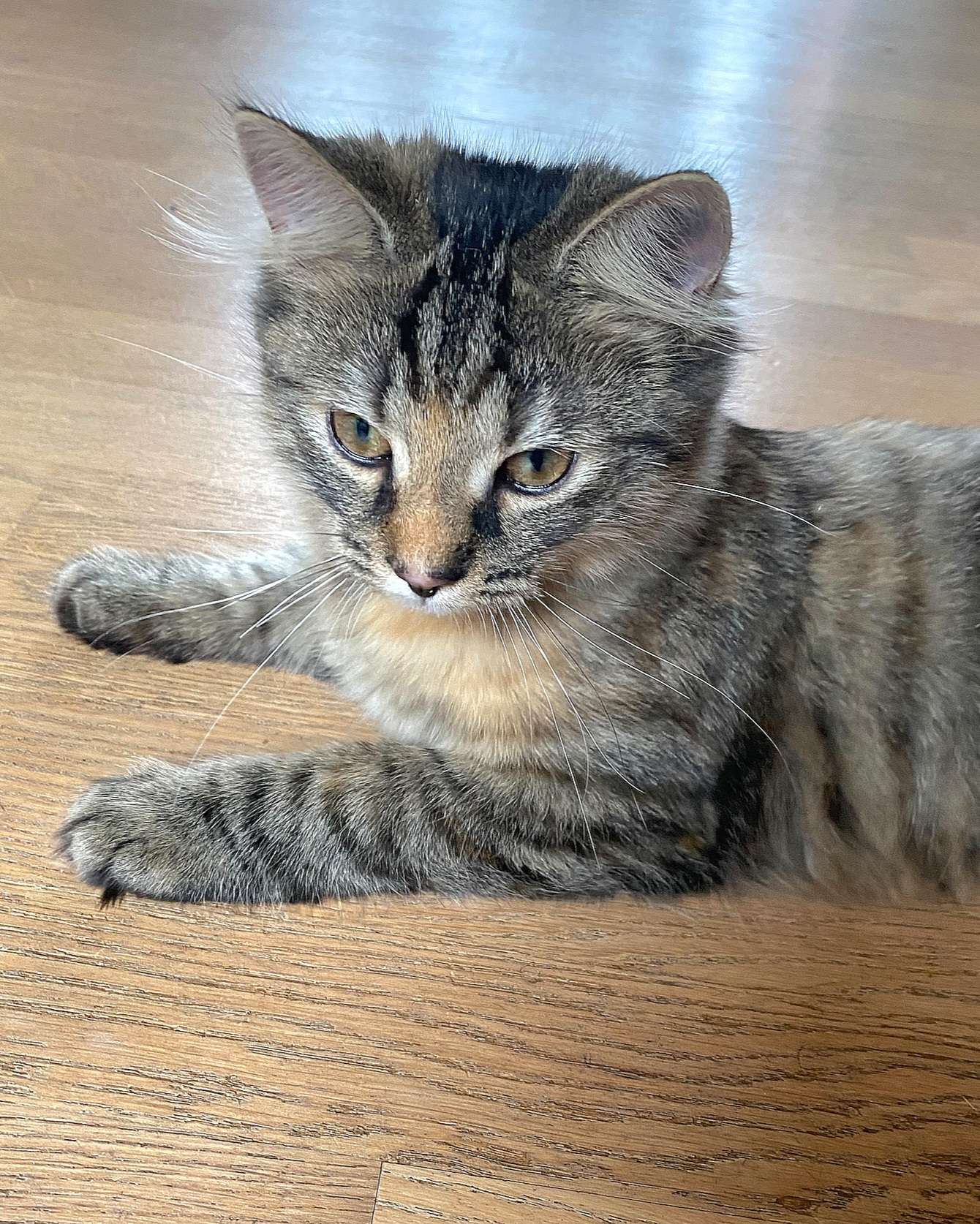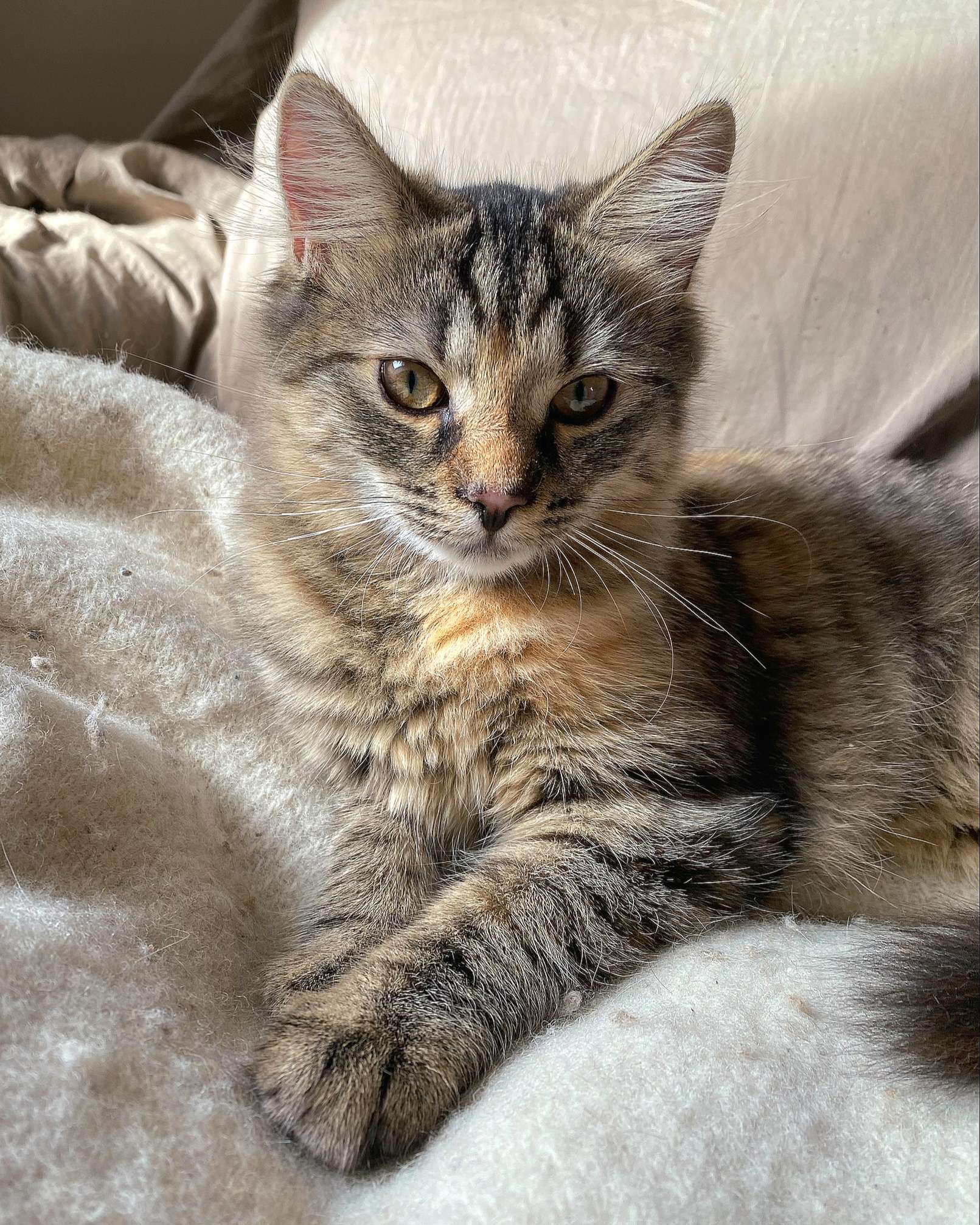 Jeg er en kosete, leken og nysgjerrig liten frøken. Jeg er også trygg og uredd. Jeg kan trives i et hjem med andre katter, hunder, eller i en familie med eller uten barn.